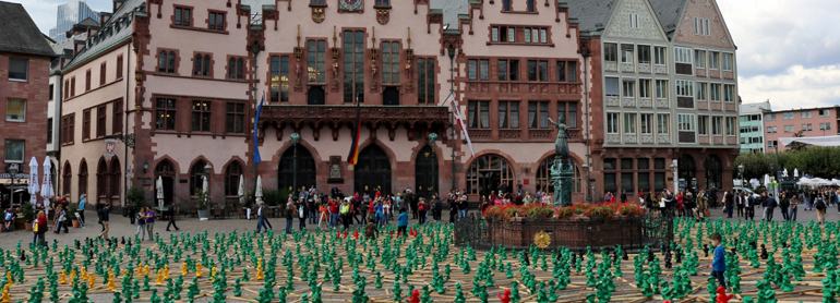 Dort bevölkern sie bis zum 27. September den Römerberg und werden anschließend im Rahmen der Festlichkeiten zum 25. Jubiläum der Deutschen Einheit in der Stadt zu sehen sein.