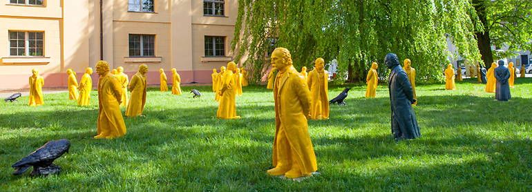 Anlässlich des 200. Geburtstags Theodor Fontanes bevölkern mit der Installation „Wanderer zwischen den Welten“ 400 Fontane-Skulpturen bis zum 22. Mai den Vorplatz der Kulturkirche in Neuruppin – der Geburtsstadt des Dichters.