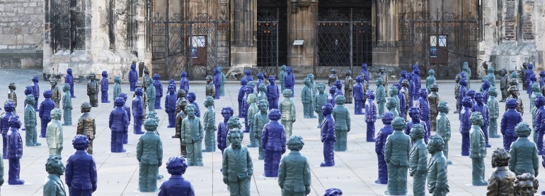 „Es bereitet Freude, sich mit den Gedanken, Schriften und Erkenntnissen des Physik-Genies auseinanderzusetzen“, sagt Konzeptkünstler Hörl. Das Prinzip des Diskurses werde durch das Serielle der Installation auf dem Münsterplatz sowie der im Ulmer Museum gezeigten Ausstellung noch verstärkt. „Aufgrund der relativen Neutralität der Einstein-Figur wird diese zu einer Projektionsfläche, auf die die Menschen ihre eigenen Gedanken projizieren und sich vielleicht auch neue Fragen stellen können. Ich gebe ihnen also keine bestimmte Tendenz als Denkform vor. Wir haben es hier nicht mit einem klassischen Denkmal zu tun, sondern mit einer Arbeit, die als Kommunikationsmodell funktioniert. Über die serielle Reihung entwickelt sich der Gedanke, dass jede Besucherin und jeder Besucher an dieser künstlerischen Idee teilnehmen kann. Dies entspricht der Grundidee des demokratischen Gleichheitsprinzips, das auch Bildungsinstitutionen zugrunde liegt. Albert Einstein hat unsere Weltsicht verändert. Nicht nur als Wissenschaftler, sondern auch als Weltbürger und Pazifist. Bis heute ist er für Generationen von Menschen eine große Inspirationsquelle und aktueller denn je. Außerdem hatte er einen brillanten Sinn für Humor“, so Ottmar Hörl über den „berühmtesten Sohn Ulms“.