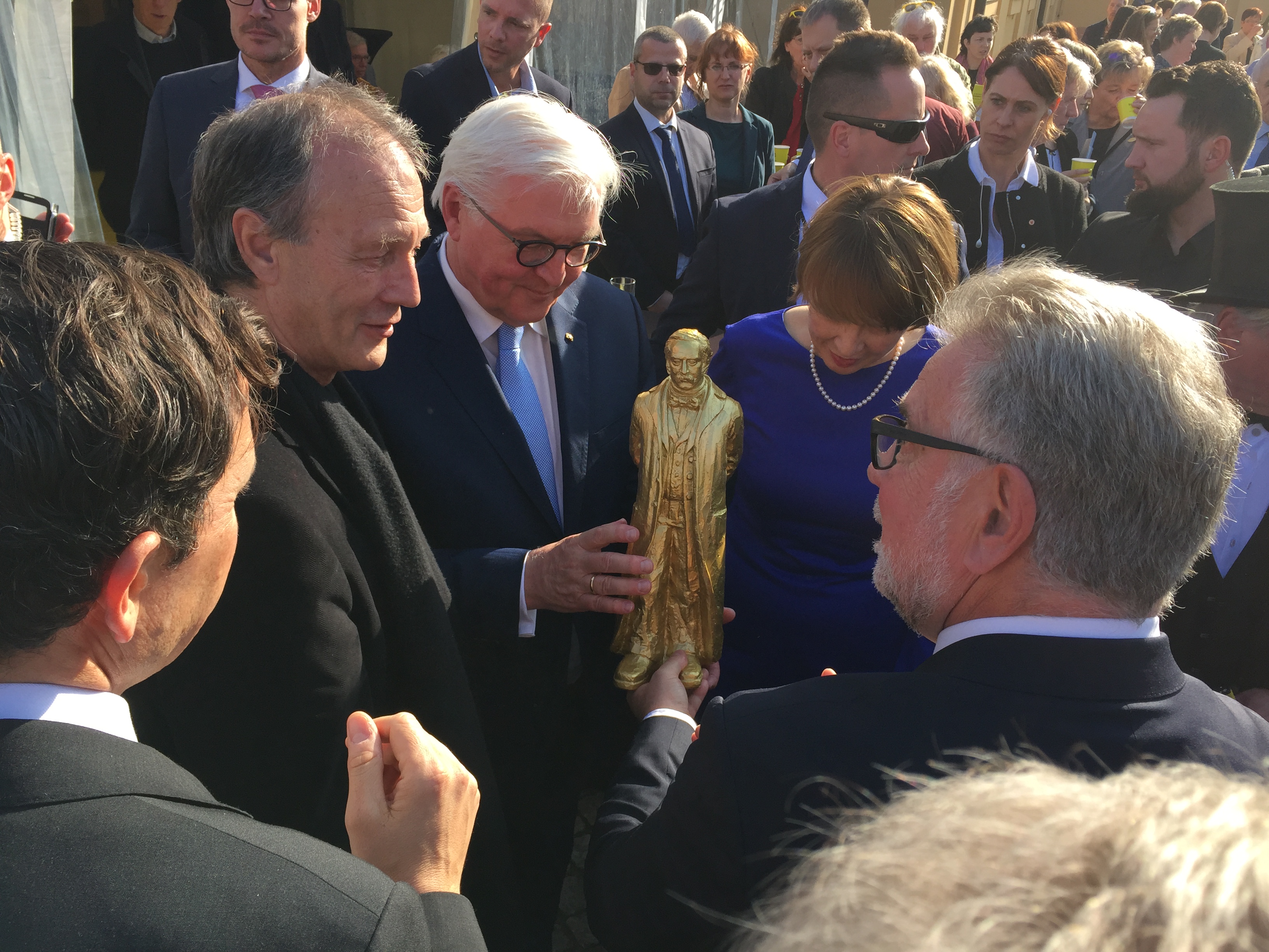 "Die Farbe Gold steht dabei symbolisch für die Wertschätzung Fontanes. Kulturelle Leistungen tragen wesentlich zur Identität, zum Selbstverständnis und auch zur Weiterentwicklung einer Gesellschaft bei und sind damit im übertragenen Sinn ja 'Gold wert' " betont Andreas Vockrodt, Veranstaltungs- und Kulturmanager der Stadt Neuruppin.