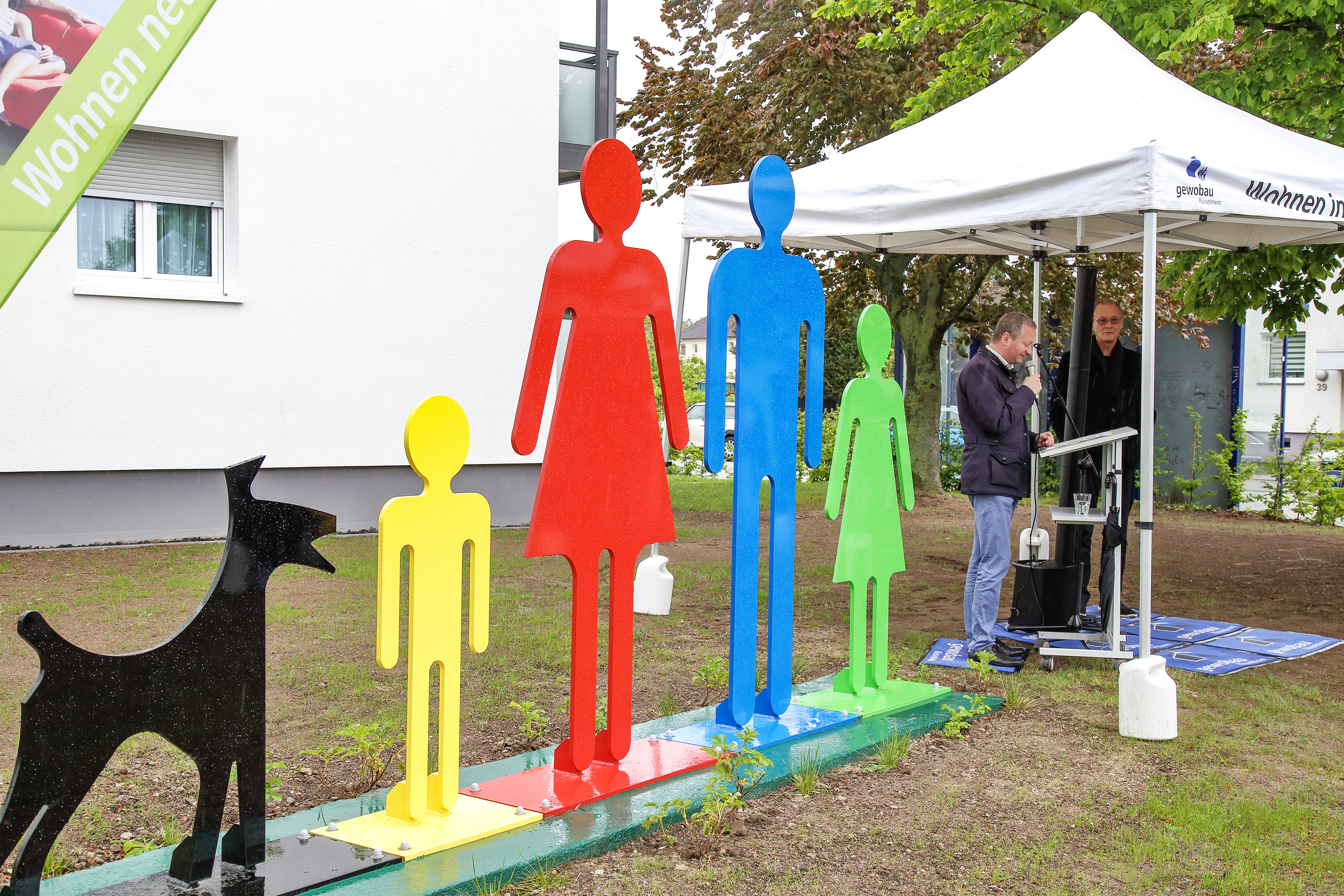 Die achte Figurengruppe des seriellen Kunstwerkes "Familientreffen", das Ottmar Hörl 1992 exklusiv für Rüsselsheim gestaltete, ist an ihren endgültigen Standort in die Kohlseestraße umgezogen.