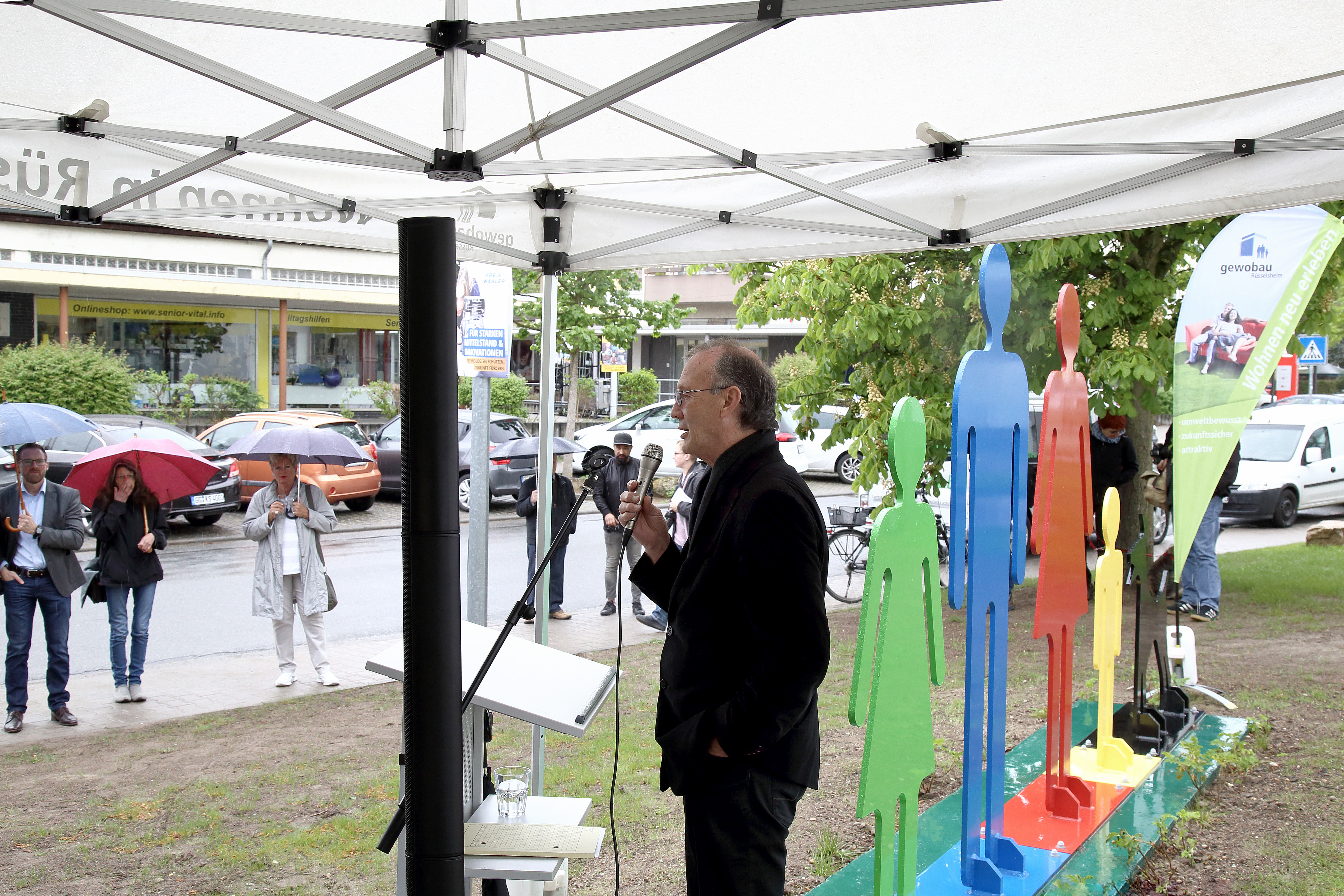 Ottmar Hörl dankte für die Erweiterung seiner Arbeit. „Das ,Familientreffen‘ ist inzwischen in die Kunstgeschichte eingegangen“, sagte er, „Rüsselsheim ist die einzige Stadt in Deutschland, die über eine serielle Figurengruppe verfügt.“