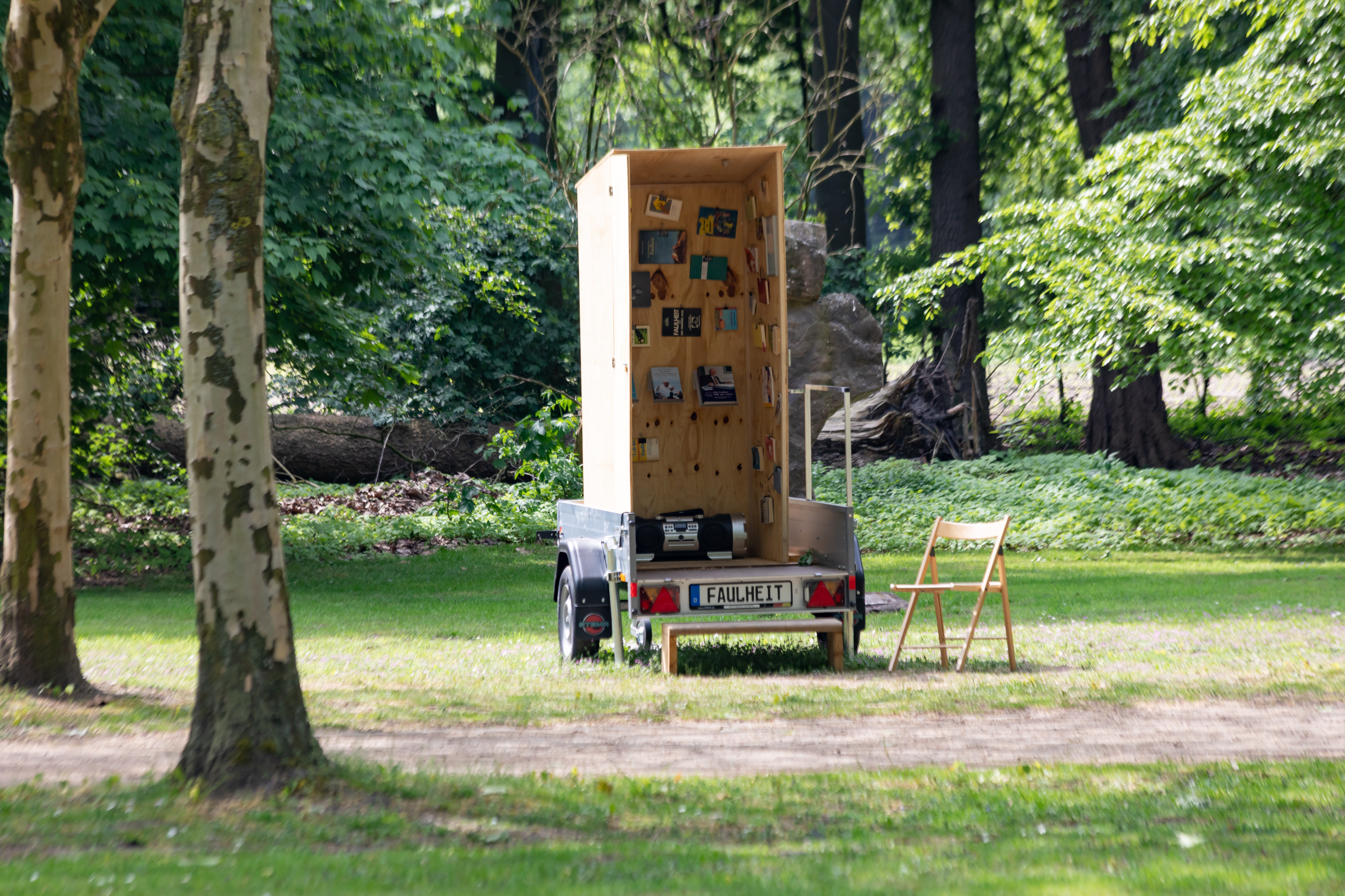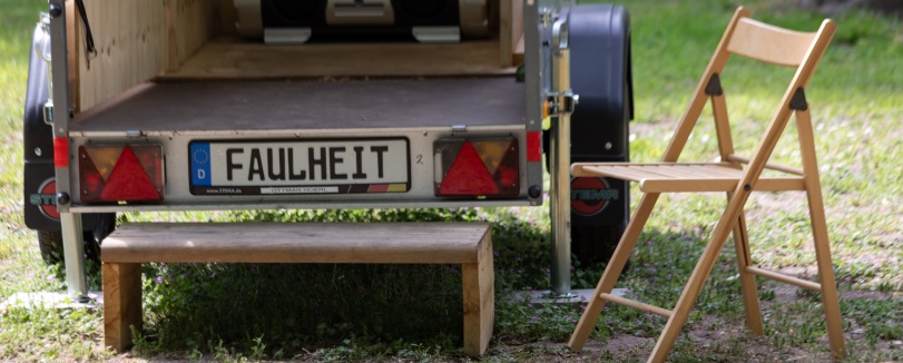 Sieben bundesweit tätige KünstlerInnen haben sich zu den sieben Todsünden Gedanken gemacht und ihre individuelle Auseinandersetzung mit einer Sünde auf jeweils einem Anhänger dargestellt. Die Aufgabe wurde per Losverfahren an die teilnehmenden Künstler übertragen, wobei Ottmar Hörl das Los der "Faulheit" zufiel. Seinem Credo entsprechend "Skulptur als Organisationsprinzip" darzustellen, gestaltet der Künstler die Faulheit mittels Büchern und Heften zum Thema, die er mit Klammern an den Holzwänden des Anhängers verteilt. Eine individuelle Eigeninterpretation oder eine stilistische Festlegung des Schaffenden sucht der Betrachter vergebens, denn der minimale Raum wird zu einer kleinen Bibliothek, die einen gigantischen, vielfältigen Gedankenraum eröffnen kann. Das Musikstück "Lob der Faulheit" des Komponisten Joseph Haydn auf einem Ghettoblaster per CD abspielbar, verweist auf ein weiteres Gebiet, das den Hörsinn miteinbezieht. Ein schlichter Stuhl lädt zum Faulsein ein.