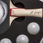 Tischtennisschlägergarnitur mit 2 Konterfeis als Siebdruck-Applikationen