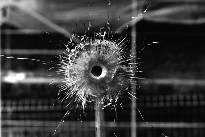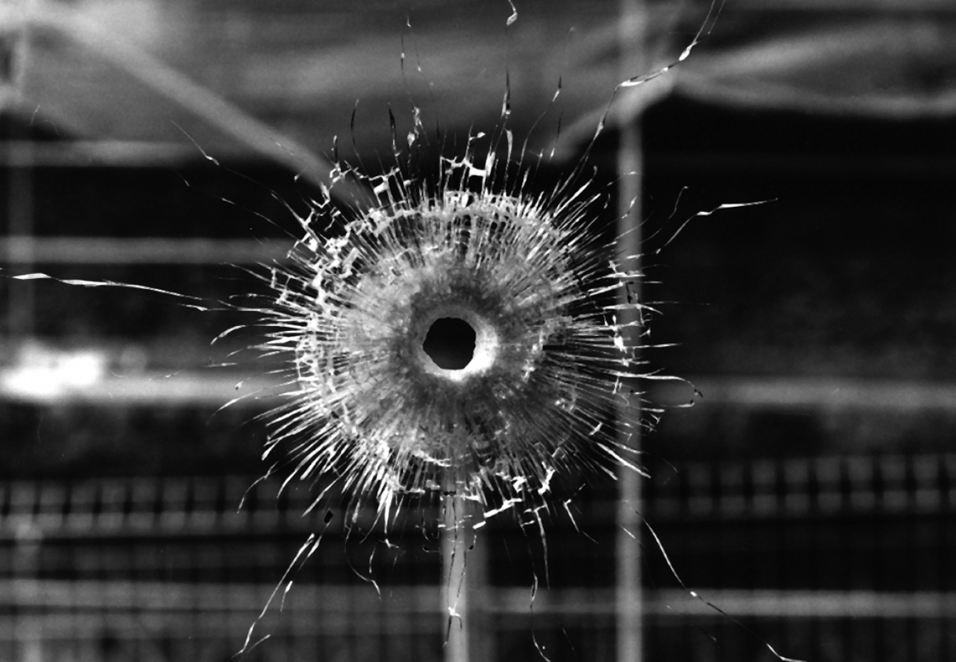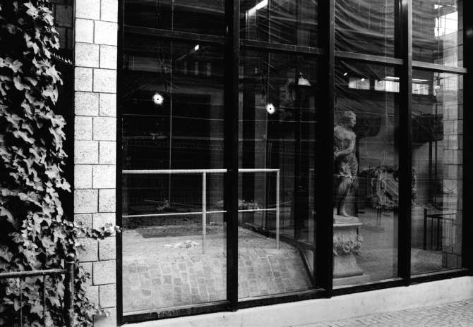 Die Partitur zu dieser Aktion hat Ottmar Hörl verfasst, ein Bildhauer und Fotokünstler, der – rein privat – ein Mensch von entwaffnender Antimilitanz ist; seine künstlerischen Konzepte enthalten aber immer wieder gewaltförmige Elemente. Die beiden Schüsse im Morgengrauen haben den Raum gezielt strukturiert (wenn solche Überlegungen für einen Moment gestattet sein sollen): Zwei parallele Bahnen von höchster Energie zielten mit 90 Grad auf Glas und Wand - sie waren real und körperlich existent, wenn auch nur für Sekundenbruchteile, um dann sofort nur noch gedachte Linien zu sein. Das ist in etwa die Lesart, die Hörl selbst favorisiert.