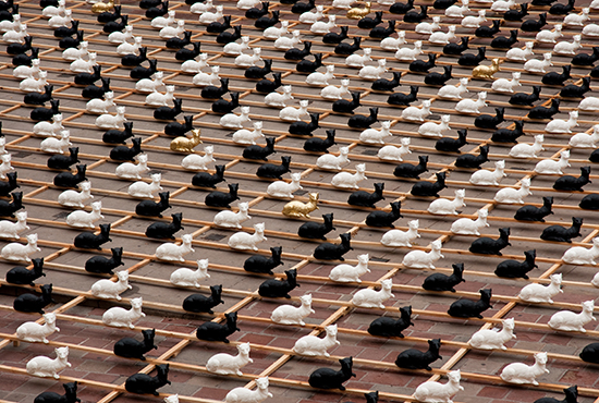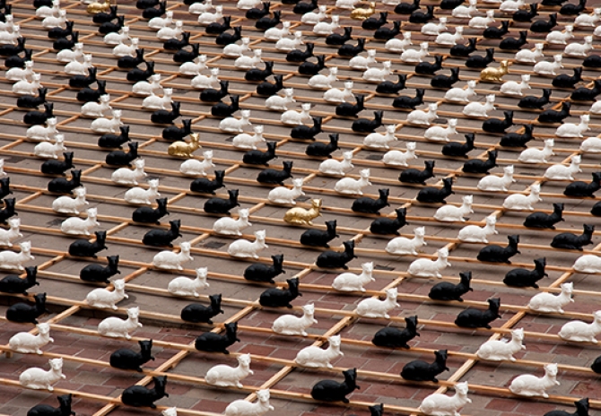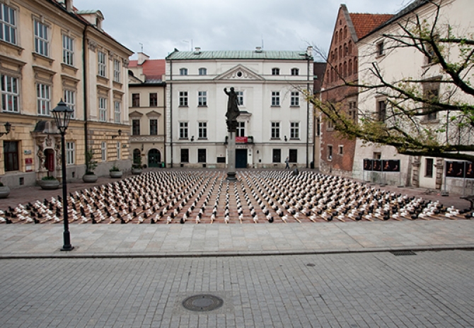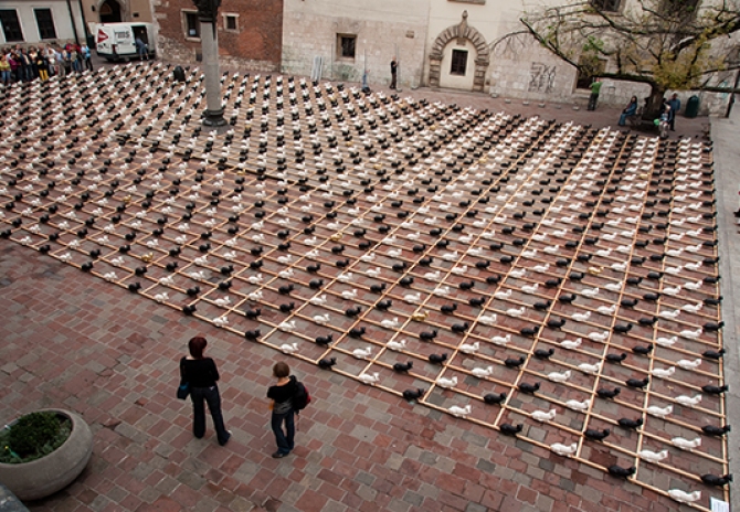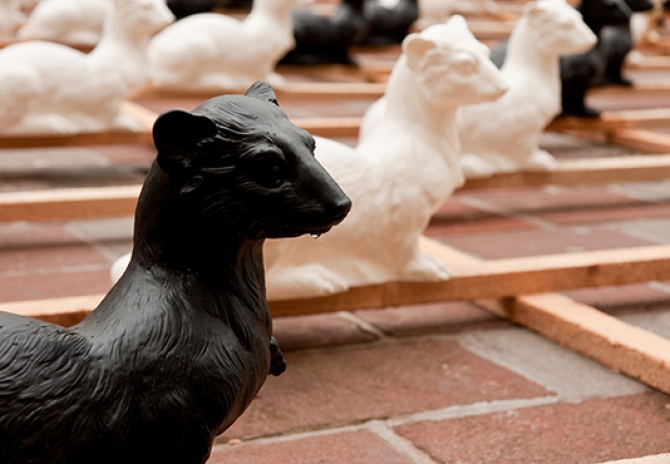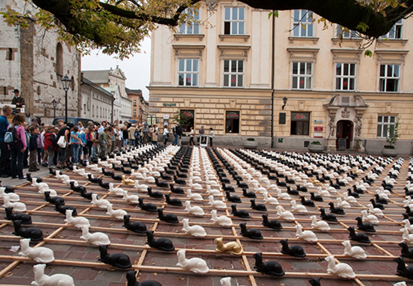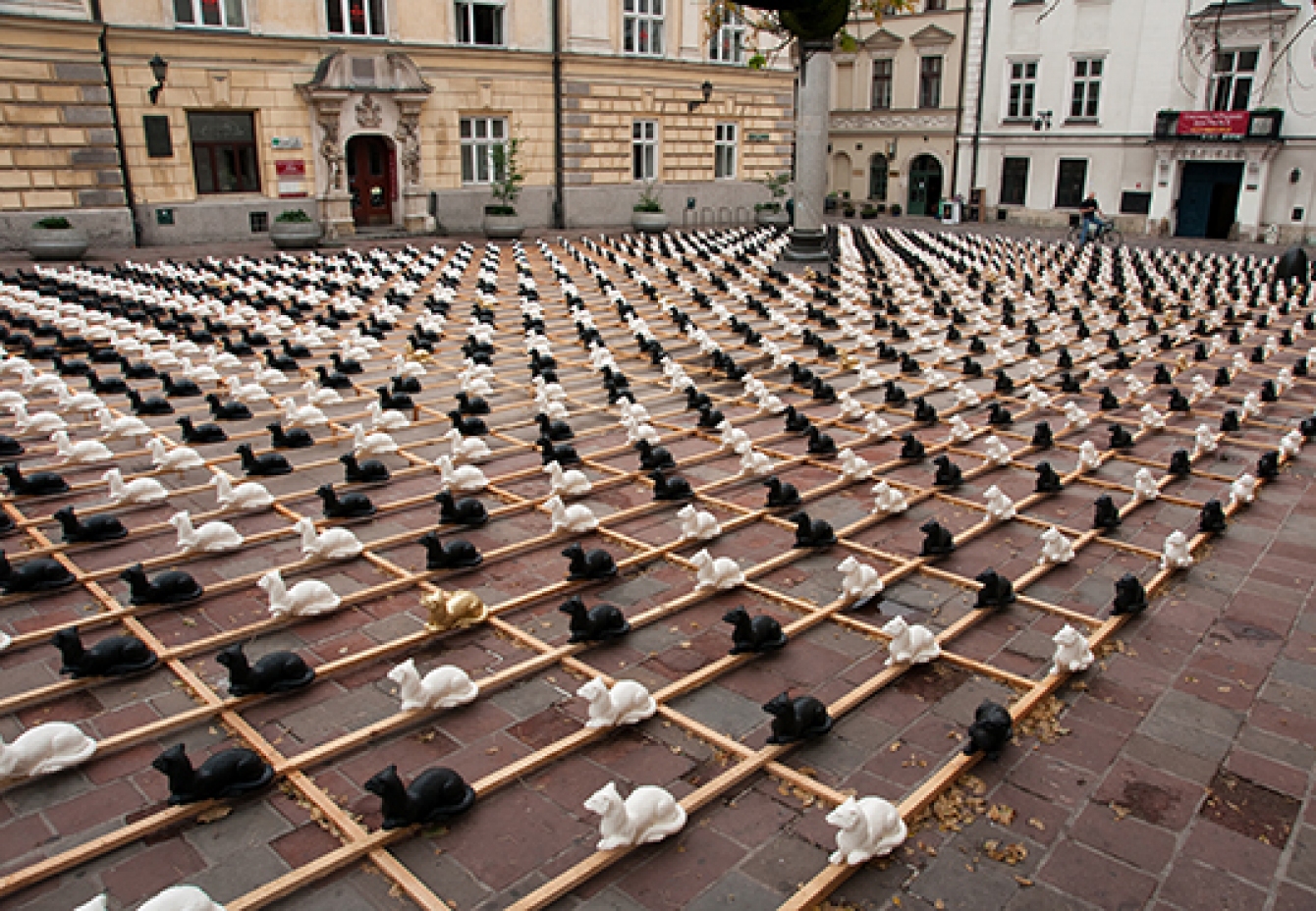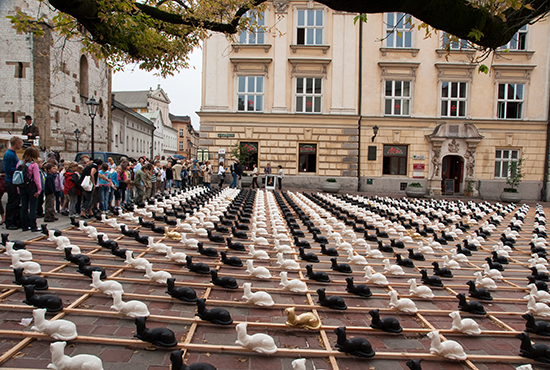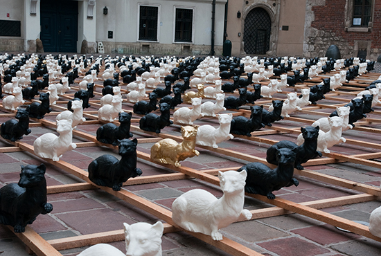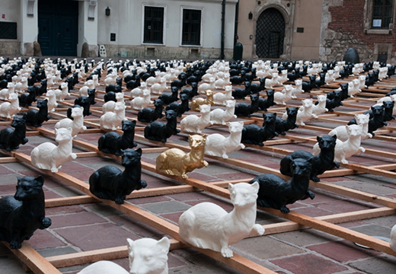 Das weltbekannte Gemälde „Dame mit Hermelin“ von Leonardo da Vinci, zu sehen im Czartoryski Museum in Krakau, nimmt Ottmar Hörl zum Anlass für dieses Projekt. Gemäß dem Untertitel der Aktion „Geben und Nehmen“ löst er den Hermelin aus dem Bild heraus und setzt ihn in ein dreidimensionales Kunstobjekt um. 1500 dieser Figuren bevölkerten den Maria-Magdalena-Platz in Krakau.