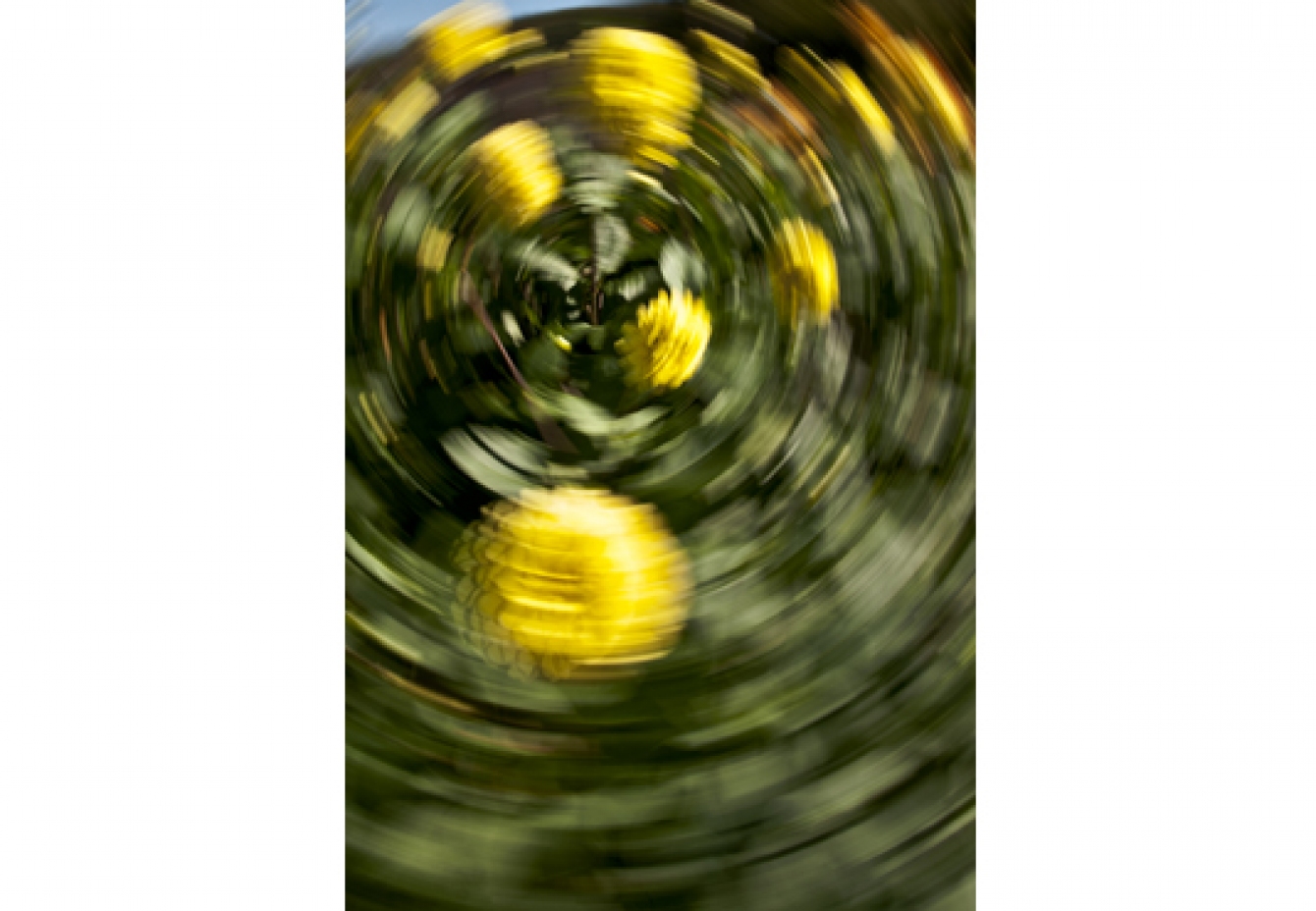 „Der Fotoapparat fotografierte eigenständig und war so von meinem ästhetischen Programm befreit. Das Resultat, der belichtete Film, repräsentierte nur sich selbst.“ Die Phänomene Ort, Zeit, Raum, Bewegung und Richtung werden in einem unzensierten Ablauf präsentiert. Wobei der Titel der Arbeit für den Besucher eine Art Zeit- und Assoziations-Brücke schafft: Zu Vincent van Gogh und seinen Sonnenblumen-Bildern vor über 120 Jahren.