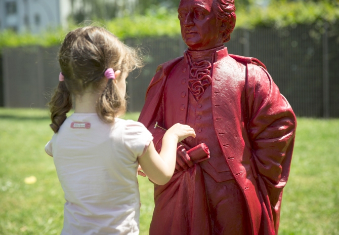 ”Goethe ist eine der faszinierendsten Frankfurter Persönlichkeiten. Er war weltoffen, neugierig, blickte über den eigenen Tellerrand, sondern entwickelte in vielen Bereichen eine unglaubliche Bandbreite, das kann Inspiration für zukünftige Generationen sein. Ich verstehe Kultur nicht als hierarchische Konzeption, sondern kämpfe darum, dass sich möglichst viele Menschen in einer Gesellschaft damit auseinandersetzen.“ (Ottmar Hörl)