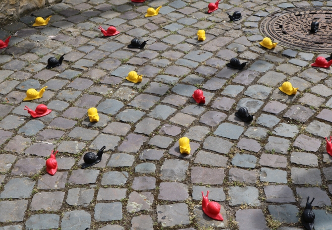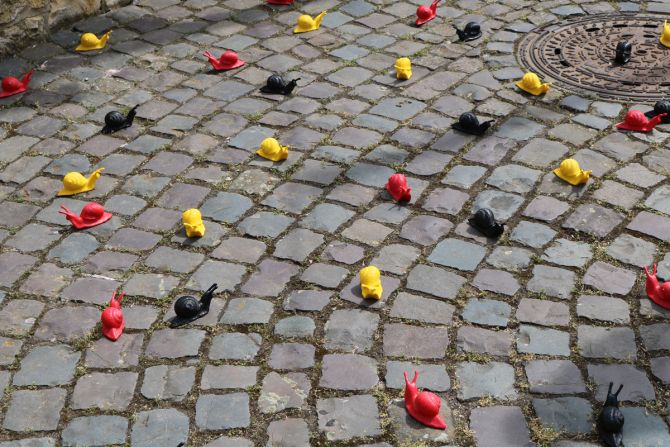 200 Jahre Rheinhessen – Ottmar Hörl zelebriert das Jubiläum, indem er das für die Region typische Motiv der Weinbergschnecke aufgreift und ihm als Symboltier die gebührende Würdigung zukommen lässt. Schnecken gibt es seit vielen Millionen Jahren. Spätestens seit der Renaissance werden Ihnen auch positive Charaktereigenschaften wie Selbsterkenntnis, Klugheit und Vorsicht zugeschrieben.