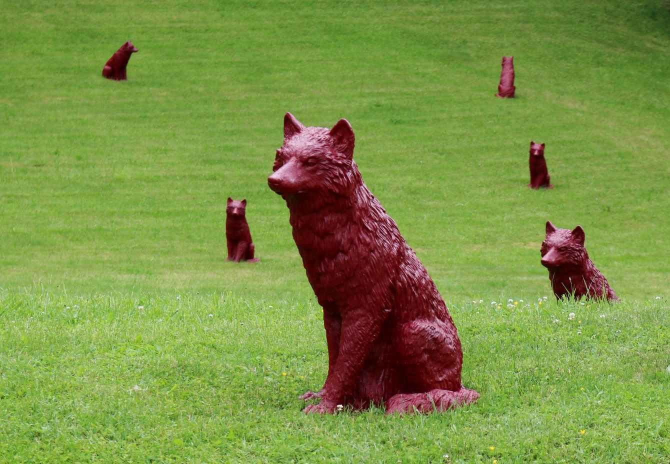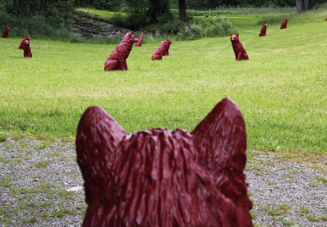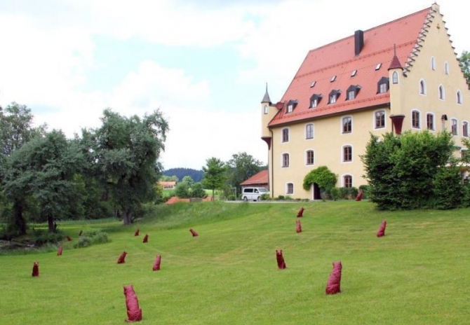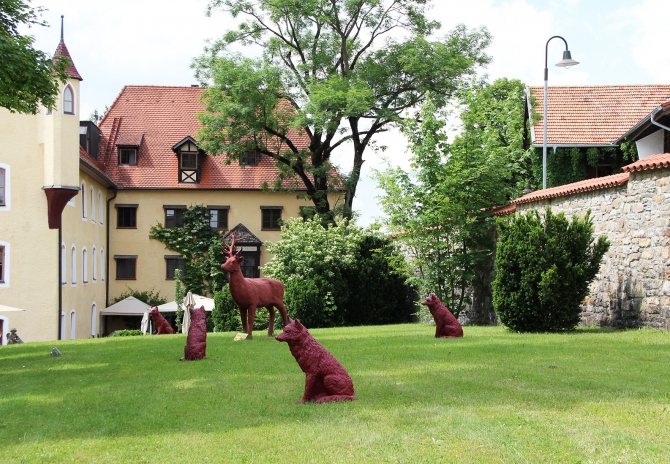 Über die Frage, ob Wölfe in der heutigen Kulturlandschaft überhaupt noch Platz hätten, lässt sich trefflich streiten - oder man besucht sie ganz einfach. In der Kulturlandschaft des Schlossparks zu Hopferau, nahe Füssen, hat ein Rudel einen Raum für sich gefunden. 55 Exemplare sind es, passend zum Jubiläum 550 Jahre Schloss zu Hopferau. Bis zum 31. August 2018 stehen sie auf den Wiesen, unter Bäumen, bei der Terrasse, belauern die Fische im Schlosssee und geben, so der Wunsch von Ottmar Hörl, Anstöße zum Nachdenken und für Diskussionen. Wölfe passen zu einem ehemaligen Jagdschloss, fand Schlossherr Bernd H. Rath. Und traf damit ein topaktuelles Thema, wie die gegenwärtigen Diskussionen zeigen. Der Wunsch, Kunst nicht einem elitären Zirkel vorzubehalten, sondern allen anzubieten, verbindet Künstler und Schlossherr. „Ich arbeite in der Gesellschaft für alle, nicht nur für die drei Prozent Kunstinteressierte, die den Weg in Galerien finden“, sagt Hörl. Und Rath hofft geradezu, dass die Skulpturen mehr Menschen die Scheu vor den Schlossmauern nehmen.
