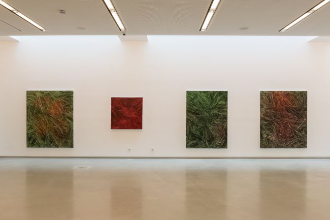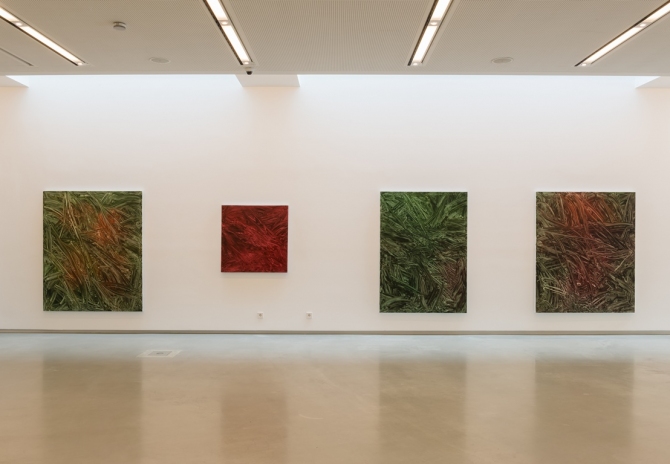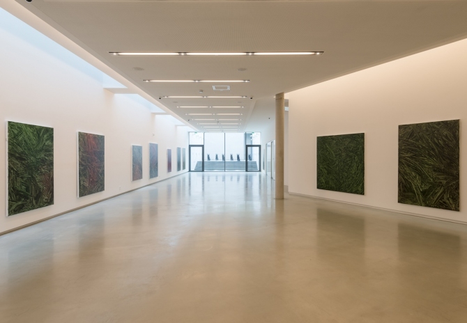Bei Ottmar Hörls malerischer Werkreihe (seit 2017) handelt es sich um gegenstandslose Malerei in monochromen Farbtönen. Titel, Struktur und Farbigkeit lassen an pflanzliche Strukturen, an Natur oder auch an Albrecht Dürers „Das große Rasenstück“ denken. Auch in der Fotografie entwickelt Ottmar Hörl seit 1982 innovative Methoden und verzichtet auf die individuelle Künstlerhandschrift. Nicht das Auge des Fotografen erfasst die Landschaft durch den Sucher, sondern die Kamera, die sich in Bewegung befindet. Das so entstandene fotografische Bild einer Landschaft löst sich in Farbstrudeln auf. All dies führt zu einer erweiterten Definition von Fotografie und dem Versuch, „der menschlichen Absicht in einer von Apparaten beherrschten Welt Raum zu verschaffen“ (Vilém Flusser, Für eine Philosophie der Fotografie).