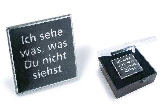 schwarz-silberfarbene Emailbrosche, ca. 2,5 x 2,5 cm, in Schmuck-Box, Signatur geprägt, Neuauflage 2020, 12,50 Euro